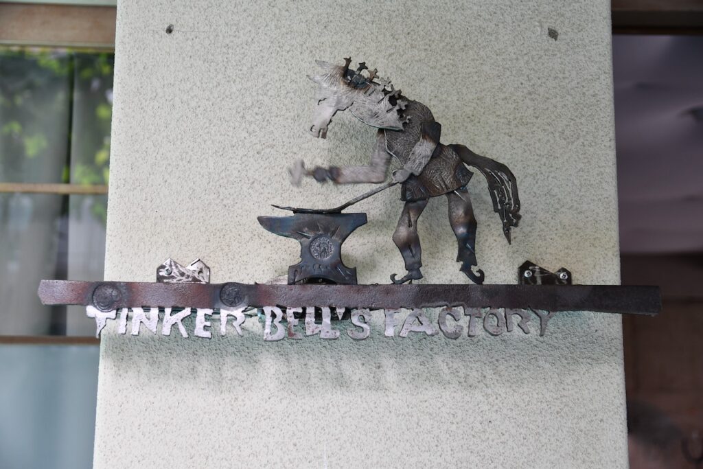 「ティンカー」には、巡回する金物修理屋、鋳掛屋、鍛冶屋、いじくり回して壊してしまう!、放浪者などという意味があります。ティンカー・ベルは、ピーターパンの物語に登場する、金物修理屋の妖精です。 ここはティンカー・ベルのファクトリー。 主は只今旅の道中で留守です。 (ということはここはネバーランドなの?)